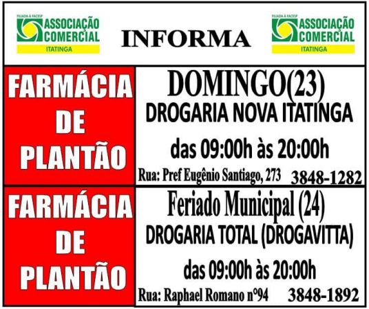 Confira a farmácia que está de plantão nesse domingo e no feriado