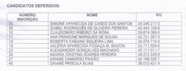 Lista de Candidatos Deferidos e Indeferidos