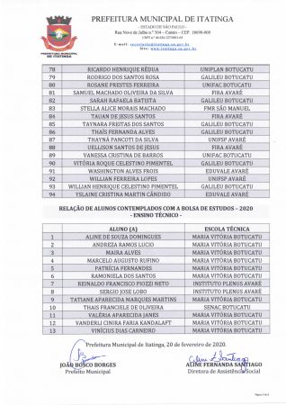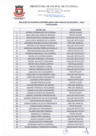Relação de alunos contemplados com a BOLSA DE ESTUDOS - 2020