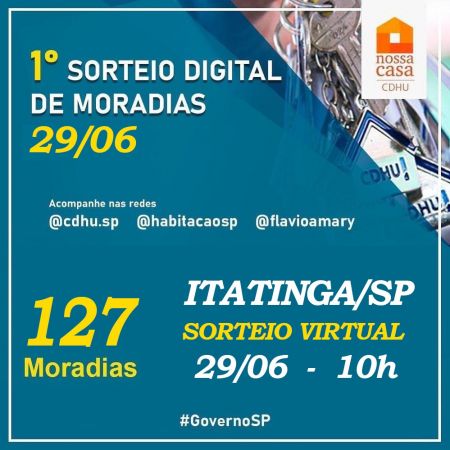 O CDHU REALIZARÁ O SORTEIO DIGITAL DAS 127 CASAS DA VILA DOS SERVIDORES.